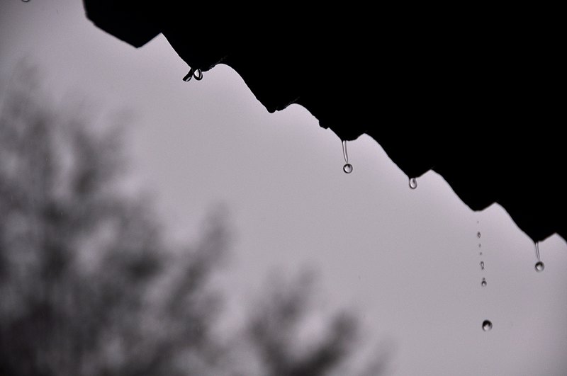 como tejas que sueltan gotas de agua.